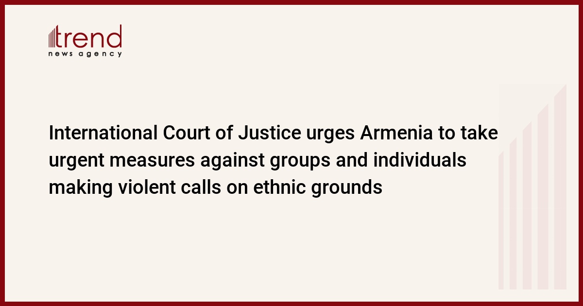 The International Court of Justice ruled that the Armenian state should take urgent measures against groups and individuals making violent calls on ethnic grounds in Armenia, Trend reports.