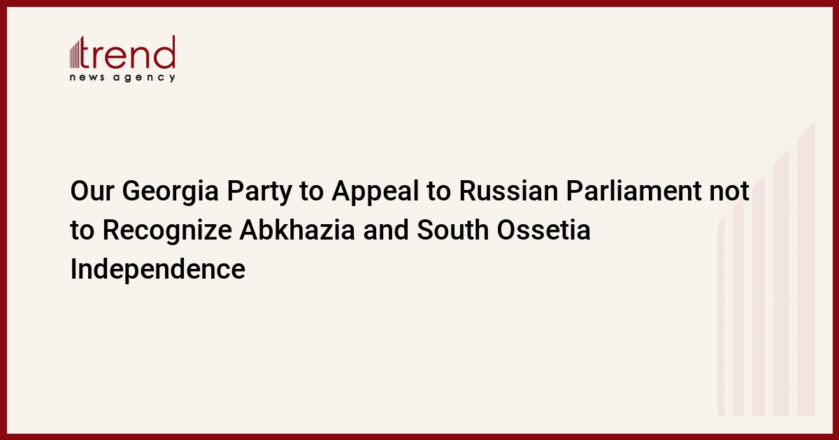 Georgia, Tbilisi / Trend corr. N.Kirtskhalia / Representatives of 'Our Azerbaijan' party of Georgia will make a special statement to the Russian Parliament. The party was founded recently by supporters of the late businessman Badri Patarkazshvili. Goca Jojua, Party leader, said to journalists that they would appeal to the MP of the Russian Parliament not to recognize the independence of Abkhazia and South Ossetia.