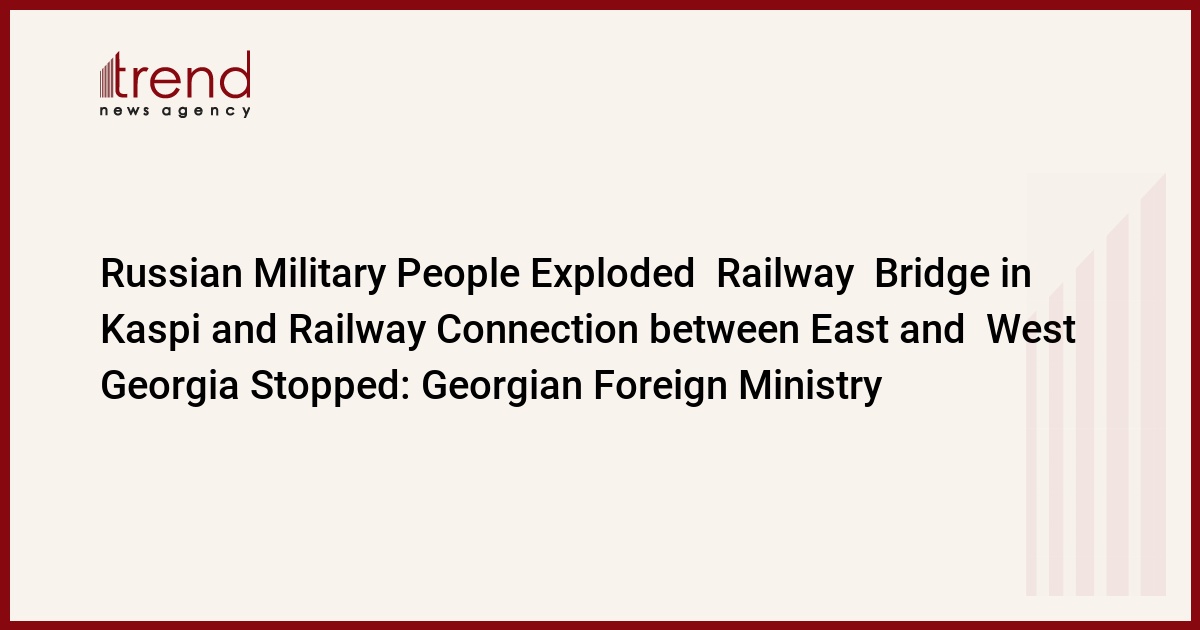 Georgia, Tbilisi, 16 August /corr. Trend N.Kirtskalia / Railway bridge was destroyed today in Kaspi region on the stage of Metekhi-Grakari. The Foreign Ministry of Georgia reported that Russian servicemen mined and exploded bridge.