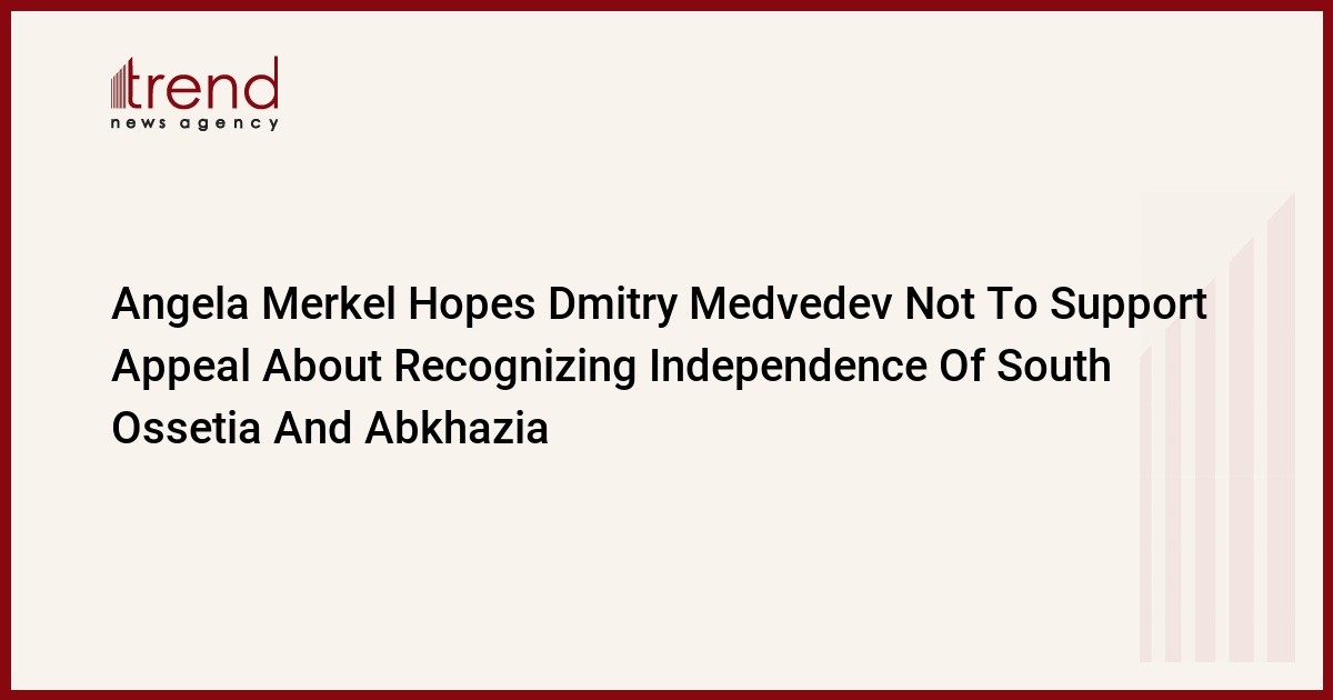Germany's Chancellor Angela Merkel hopes that Russian President Dmitry Medvedev won't support the appeal of the Federation Council and State Duma, to recognize the independence of South Ossetia and Abkhazia, reported PNA.