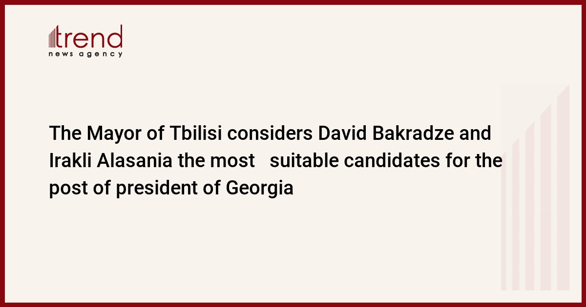 The Mayor of Tbilisi Gigi Ugulava considers the most suitable candidates for the post of president of Georgia the parliamentary minority leader David Bakradze and Minister of Defense Irakli Alasania.