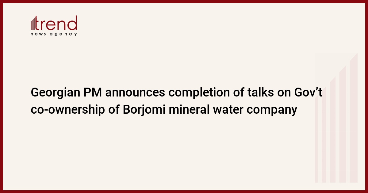 The Georgian Government has completed talks with shareholders of IDS Borjomi, one of the largest mineral water producers in Georgia, and will become a co-owner of the enterprise without having to make expenses for the move, Prime Minister Irakli Garibashvili announced on Monday, Trend reports citing Agenda.