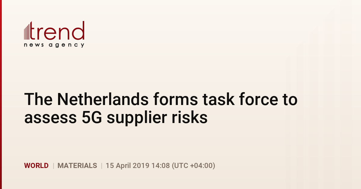 The Dutch government on Monday said it will establish a special task force to weigh potential security risks stemming from suppliers of 5G network technology, reports Trend citing to Reuters