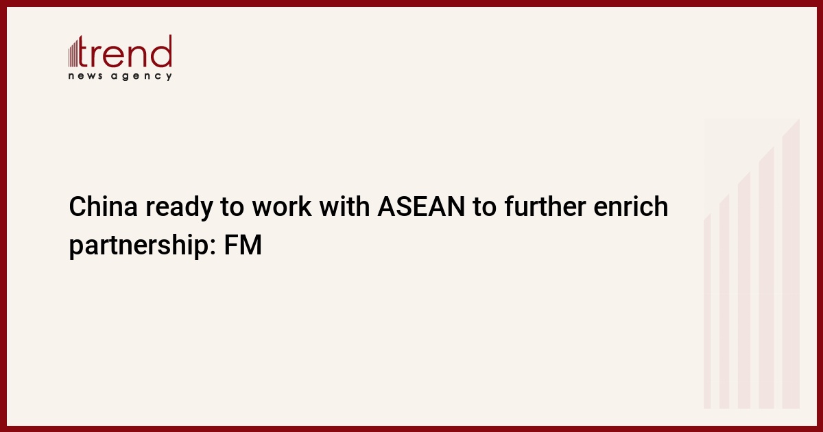 China stands ready to work with ASEAN to further enrich the strategic partnership and usher in a new era of peace, development and cooperation for the region, said Chinese State Councilor and Foreign Minister Wang Yi, Trend reports citing Xinhua.