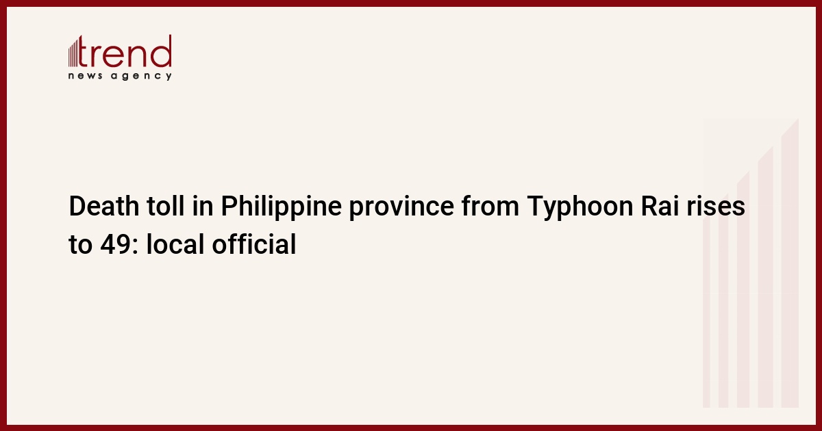 At least 49 people have been killed in the Philippine province of Bohol after Typhoon Rai battered the country, a provincial official said Sunday morning, Trend reports citing Xinhua.