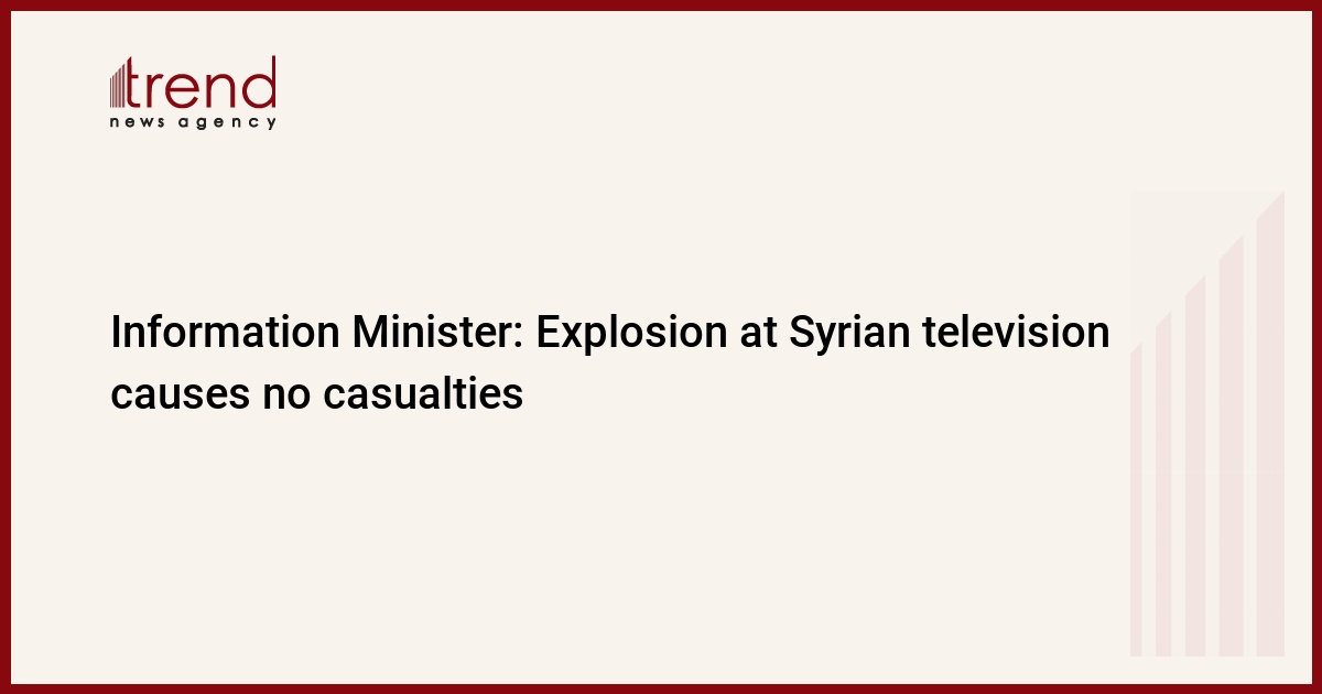 There are no casualties as a result of an explosion at the Syrian state television, Syrian state news agency Sana quotes the country's Information Minister Omran Al-Zoubi as saying on Monday.