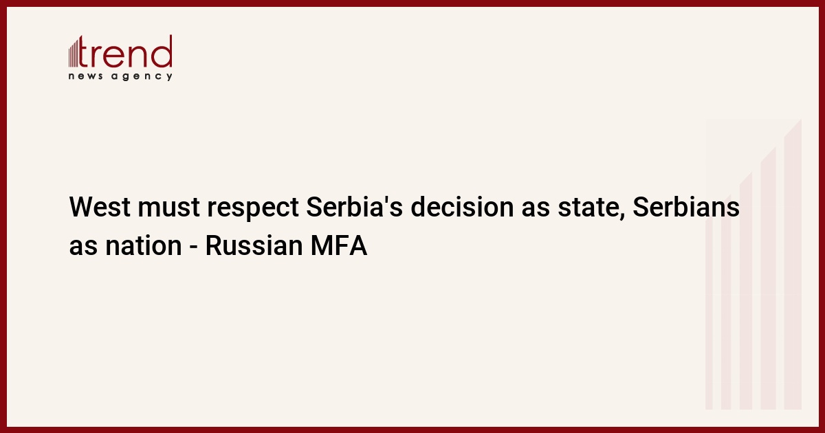 BAKU, Azerbaijan, December 27. The West should respect the decision of Serbia as a state and Serbians as a people, Russian Foreign Ministry spokeswoman Maria Zakharova said during a weekly briefing, Trend reports.