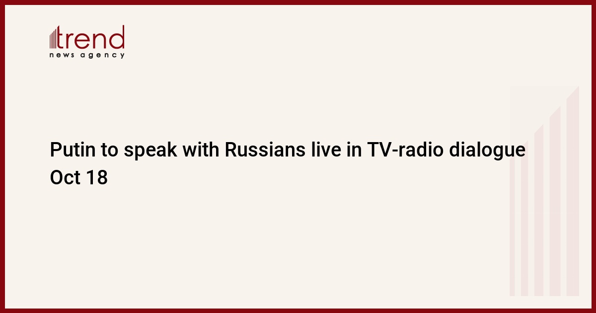 Russian President Vladimir Putin will reply to questions by Russians live in a TV-radio dialogue on October 18 at noon MT.