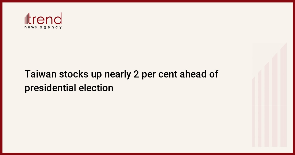 ( dpa ) - Taiwan shares surged nearly 2 per cent Friday on the eve of a presidential election as the business sector expected opposition leader Ma Ying-jeou to win the polls and open trade with China.