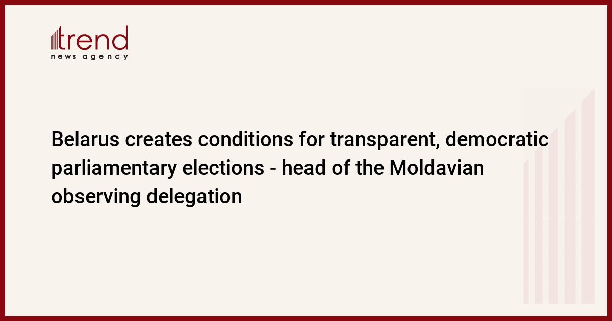 Belarus has created all necessary conditions for holding transparent and democratic parliamentary elections, stated Yuri Yeremin, head of the Moldavian delegation observing the elections to the House of Representatives of the National Assembly of Belarus, chairman of a group of friendship between the Moldavian parliament and the Belarusian House of Representatives.