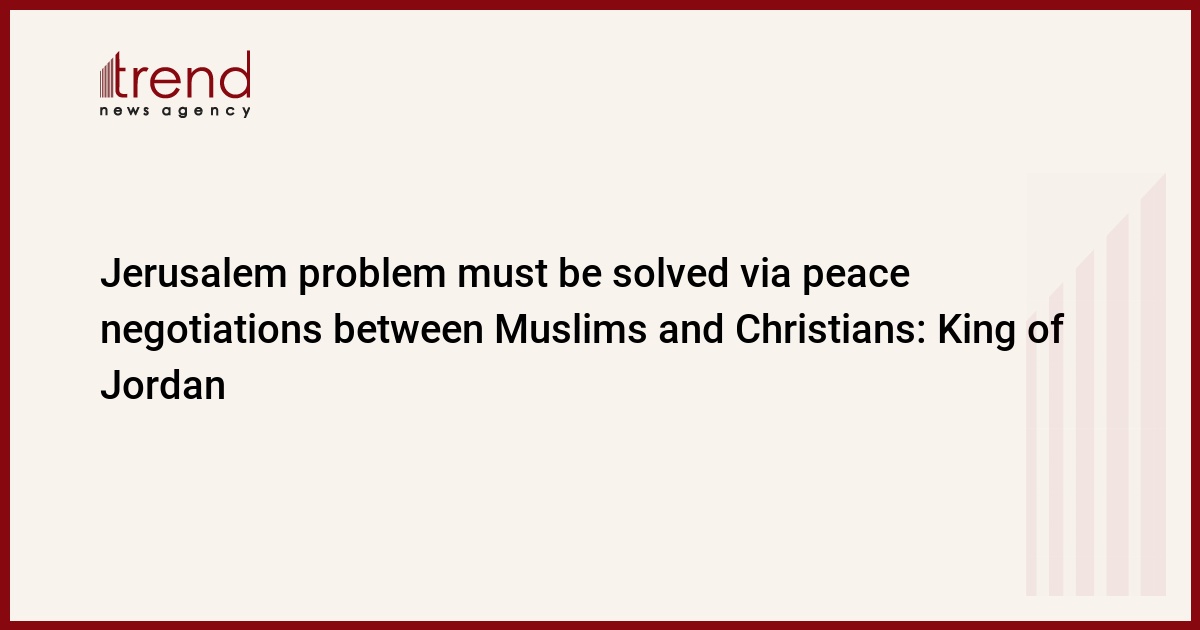 "The problem of Jerusalem should be solved through peaceful negotiations between Muslims and Christians," the King said. "We must work together to solve this problem and help the Palestinian people to free themselves from occupation."
