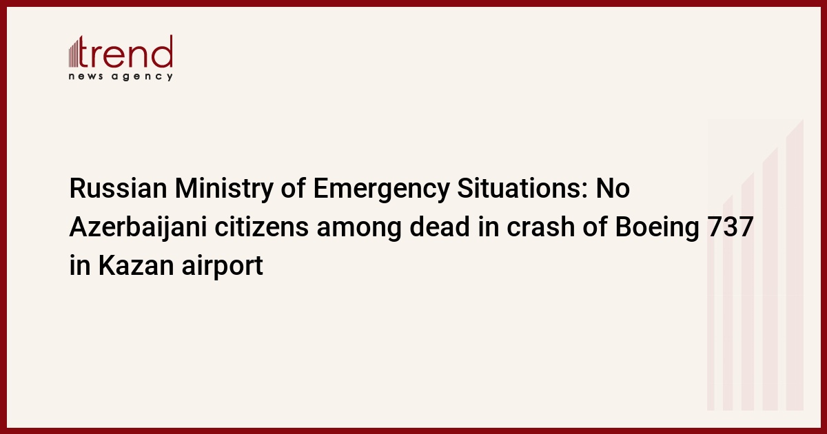 By Rufat Efendiyev - Trend: According to preliminary data there are no Azerbaijani citizens among dead in crash of Boeing 737 in Kazan airport, Russian Ministry of Emergency Situations hotline operator told Trend on Sunday.
