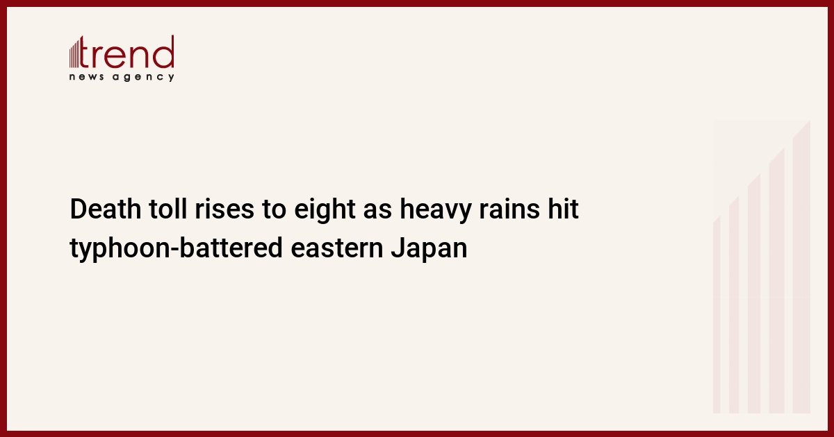 The death toll from torrential rains that caused flooding and mudslides in eastern Japan rose to eight on Saturday, with a further four missing, public broadcaster NHK reported, just two weeks after the region was hit hard by a powerful typhoon, reports Trend referring to Reuters.