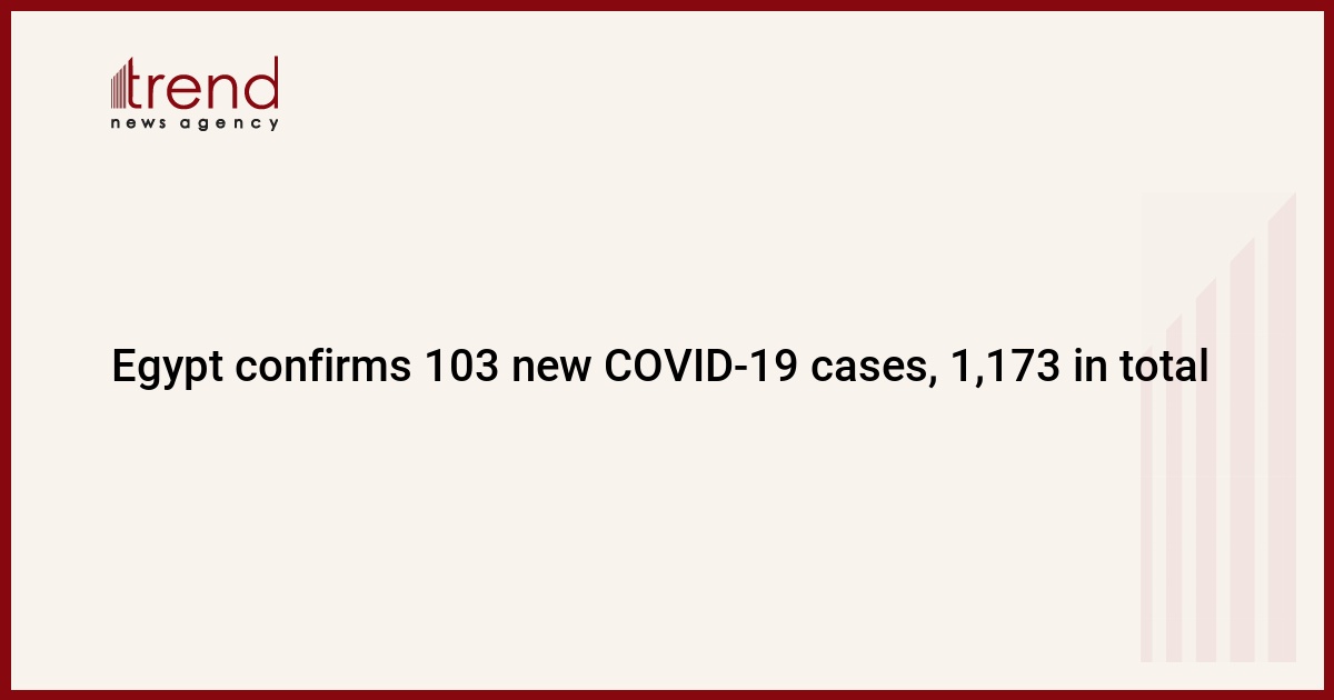 The Egyptian Health Ministry confirmed on Sunday 103 new COVID-19 cases, raising the tally of novel coronavirus infections in the country to 1,173, Trend reports citing Xinhua.