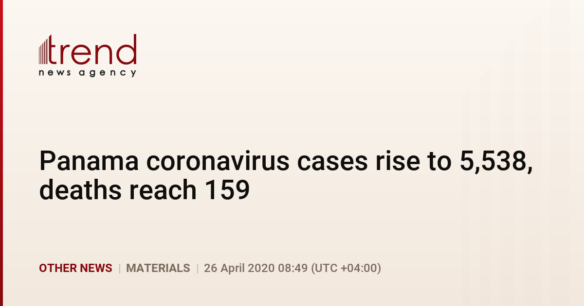 Confirmed cases of coronavirus infection in Panama reached 5,538 on Saturday, a rise of 200 from the previous day, while related deaths increased by five to 159, the health ministry said, Trend reports citing Reuters.