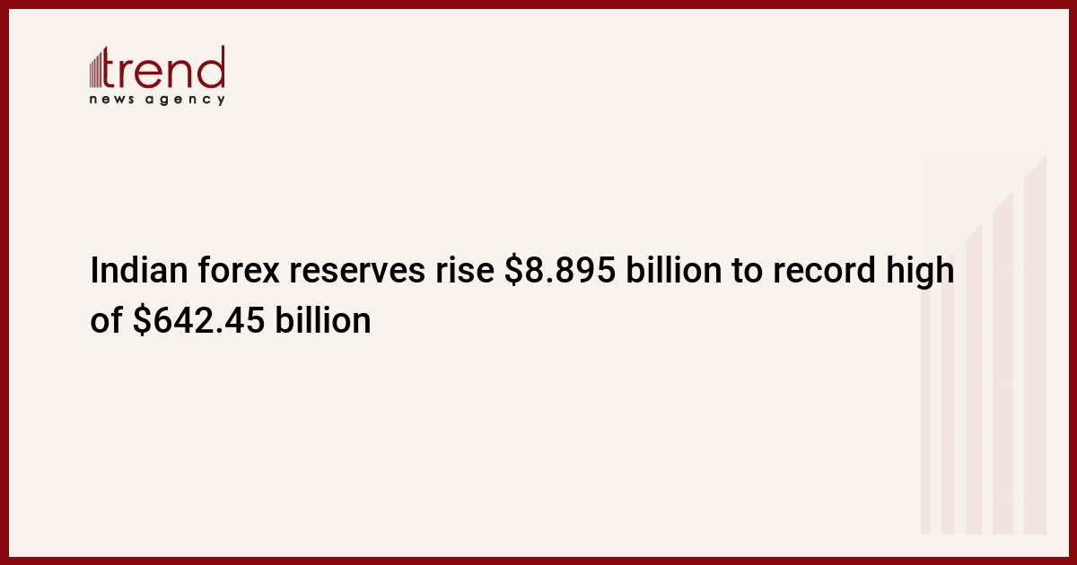 The country's foreign exchange reserves increased by $8.895 billion to reach a record high of $642.453 billion in the week ended September 3, the Reserve Bank of India (RBI) data showed.