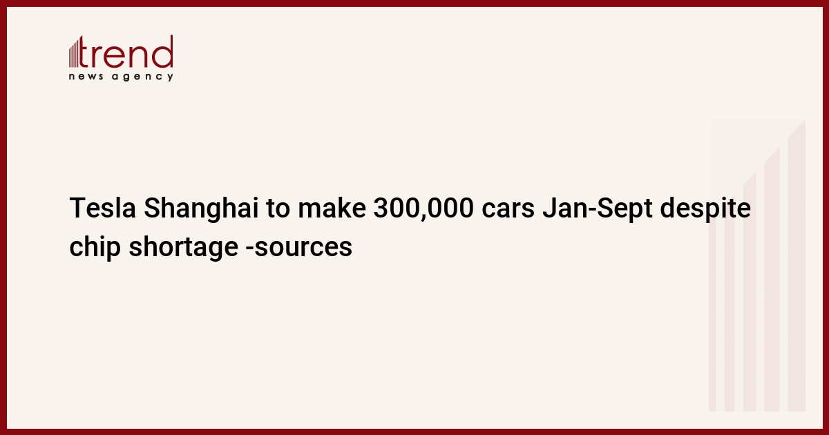 Tesla Inc's (TSLA.O) Shanghai factory is expected to produce 300,000 cars in the first nine months of the year, capped by a delivery rush in the end of the July-September quarter, despite a global semiconductor shortage, two sources said,Trend reports citing Reuters.
