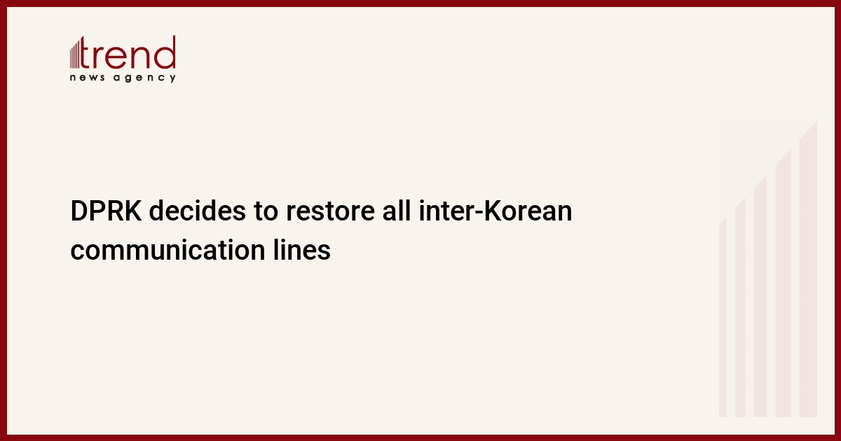 The Democratic People's Republic of Korea (DPRK) decided to restore all the north-south communication lines starting from 9:00 a.m. on Monday, according to the official Korean Central News Agency, Trend reports citing Xinhua.