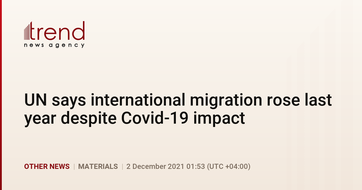 International migration rose last year despite the dramatic impact of the Covid pandemic on migration patterns, including restrictions blocking many from crossing borders, the United Nations said Wednesday, Trend reports citing France24.