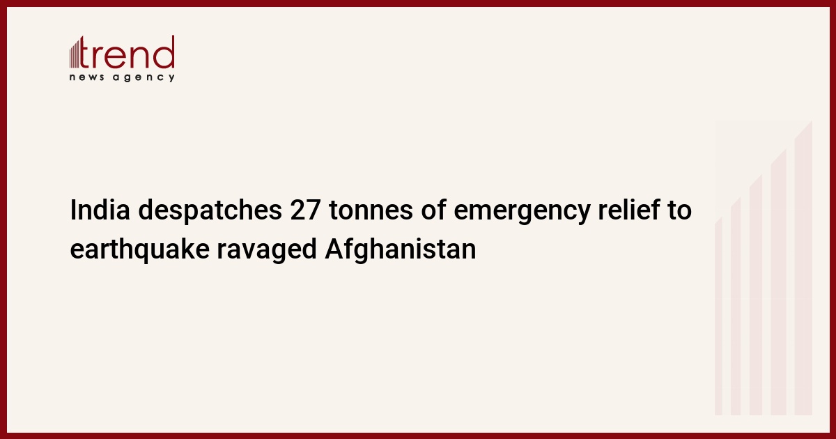 India has dispatched 27 tonnes of emergency relief assistance in two flights for the people of Afghanistan in the wake of the tragic earthquake. The relief assistance consists of essential items including family ridge tents, sleeping bags, blankets and sleeping mats, Trend reports citing Newsonair.