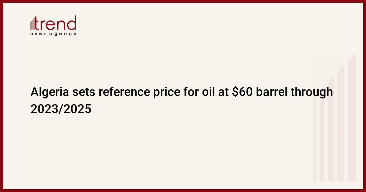 Algeria has set the reference price for crude oil at $60 a barrel through 2023-2025, state news agency (APS) said on Sunday, citing the 2023 budget approved earlier in the day by President Abdelmadjid Tebboune, Trend reports citing Reuters.