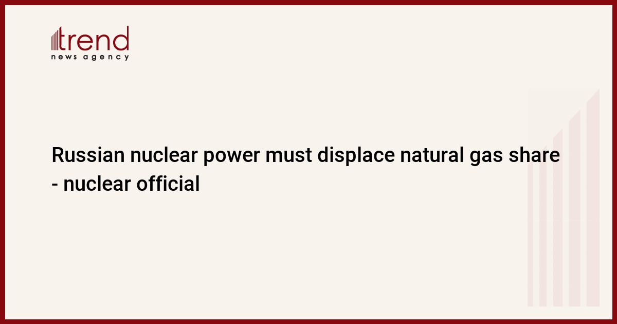 (RIA Novosti) - Nuclear energy must replace the share of natural gas in Russia's energy balance, the country's civilian nuclear chief said Tuesday, reports Trend.