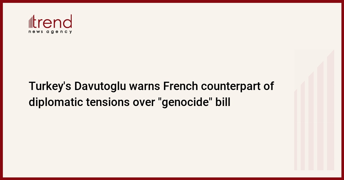 Turkey's foreign minister has warned of diplomatic tensions with France if the country's legislators pass a bill making it a crime to deny the so-called "Armenian genocide", Today's Zaman reported.