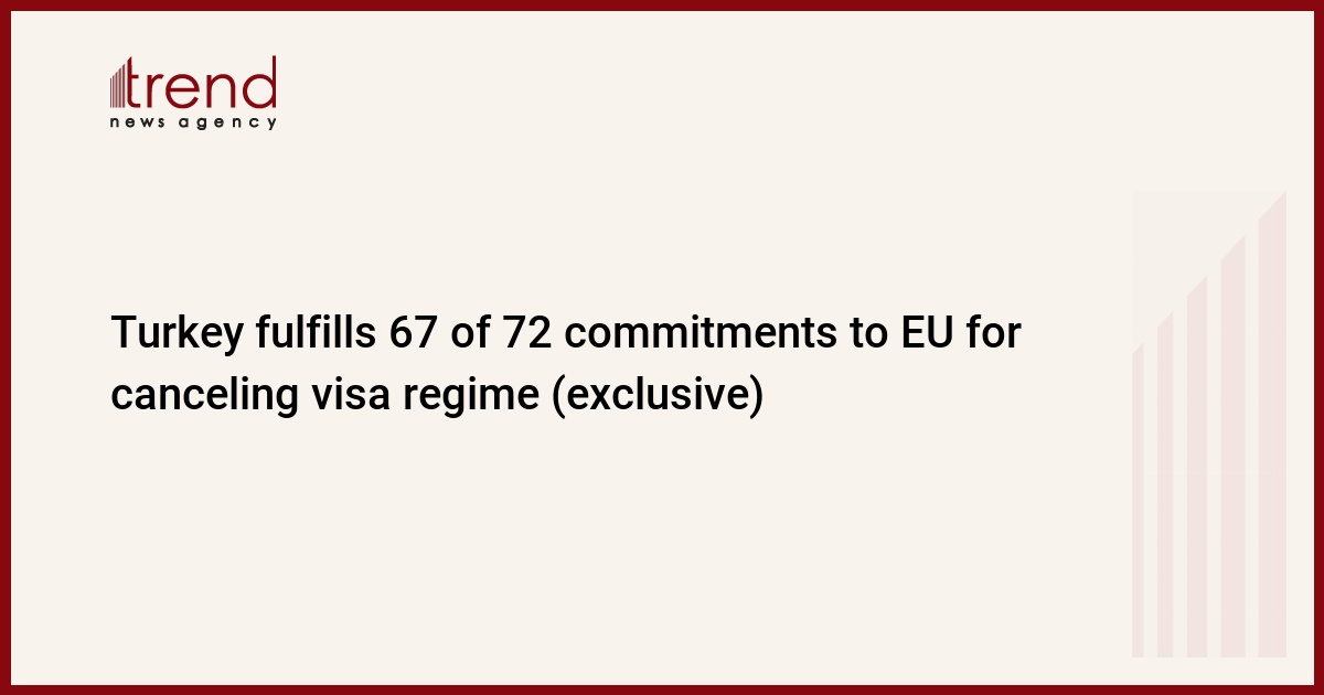 Turkey has fulfilled 67 out of 72 commitments to the European Union (EU) for canceling the visa regime, Turkey's Ministry for EU Affairs told Trend May 10.
