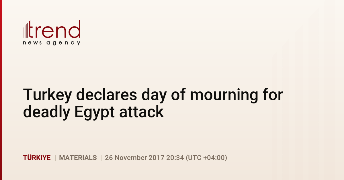 Turkey has announced that Monday will be a day of national mourning in the wake of last week's deadly terrorist attack in Egypt, Anadolu reported.