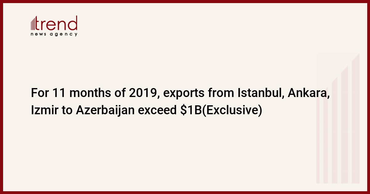 From January through November 2019, the volume of exports from Istanbul, Ankara and Izmir to Azerbaijan exceeded $1 billion, a source in the Turkish Trade Ministry told Trend.
