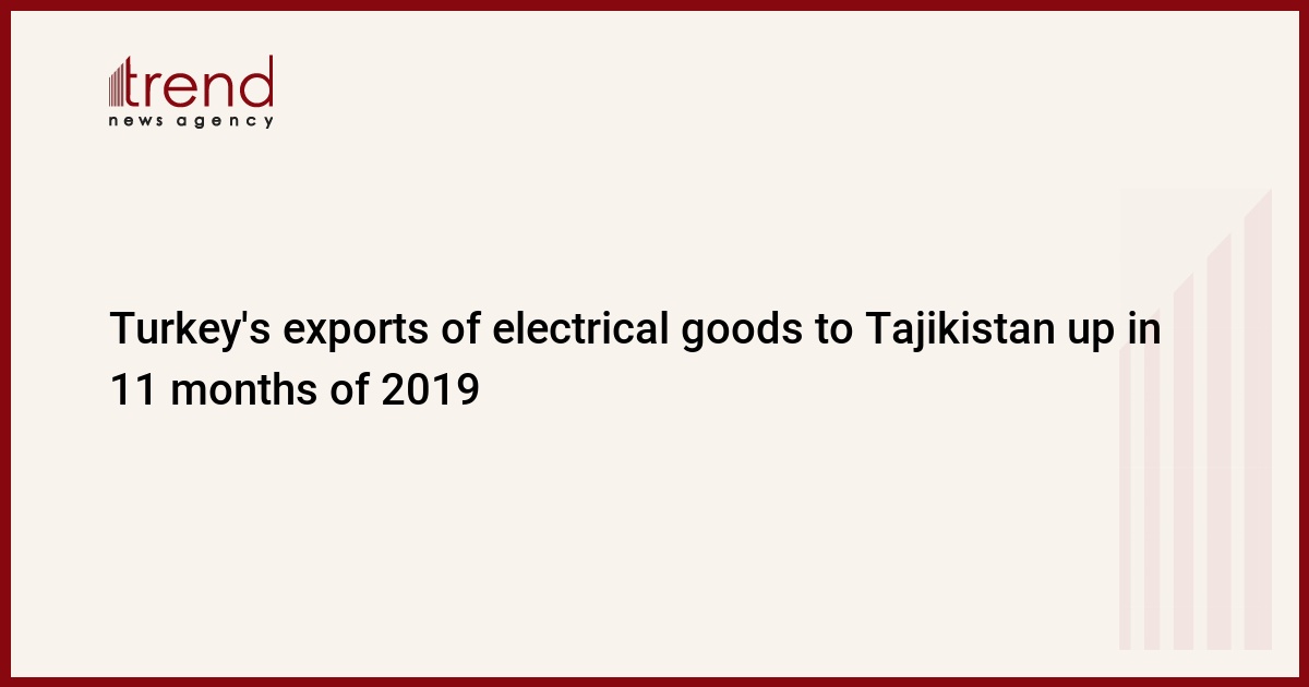 In the first 11 months of 2019, Turkey's exports of electrical goods to Tajikistan amounted to just over $11.3 million, having increased by 33.95 percent compared to the same period in 2018, Trend reports referring to the Turkish Trade Ministry.