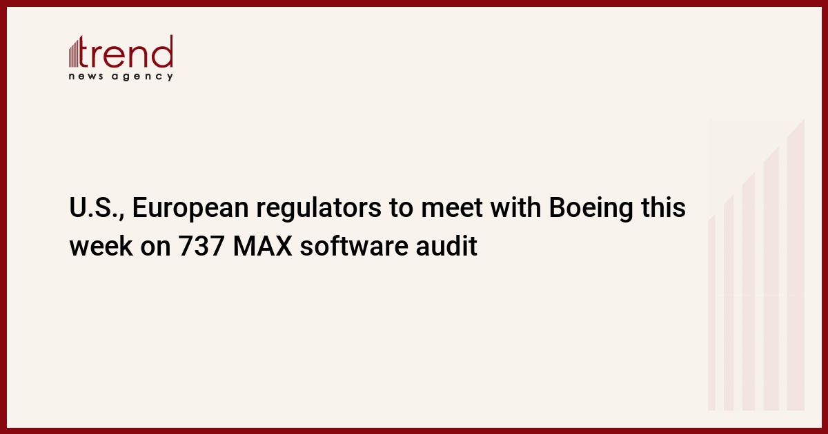 U.S. and European aviation safety regulators will meet with Boeing this week in an effort to complete a 737 MAX software documentation audit - a key step toward the grounded plane’s eventual return to service, Trend reports citing Reuters.