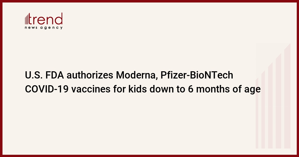 The U.S. Food and Drug Administration (FDA) on Friday authorized emergency use of the Moderna and Pfizer-BioNTech COVID-19 vaccines for children down to 6 months of age, Trend reports citing Xinhua.